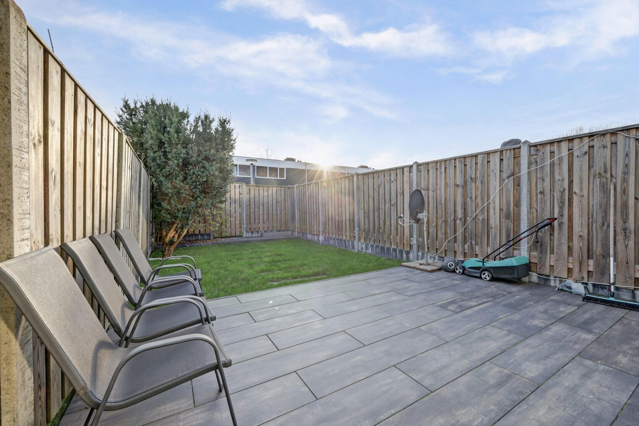 De tuin, gelegen op het zuiden, is onderhoudsvriendelijk en biedt een heerlijk plekje om van de zon te genieten of om te ontspannen na een lange werkdag. In deze oase van rust kunt u heerlijk buiten vertoeven zonder dat u zich druk hoeft te maken om tuinonderhoud.