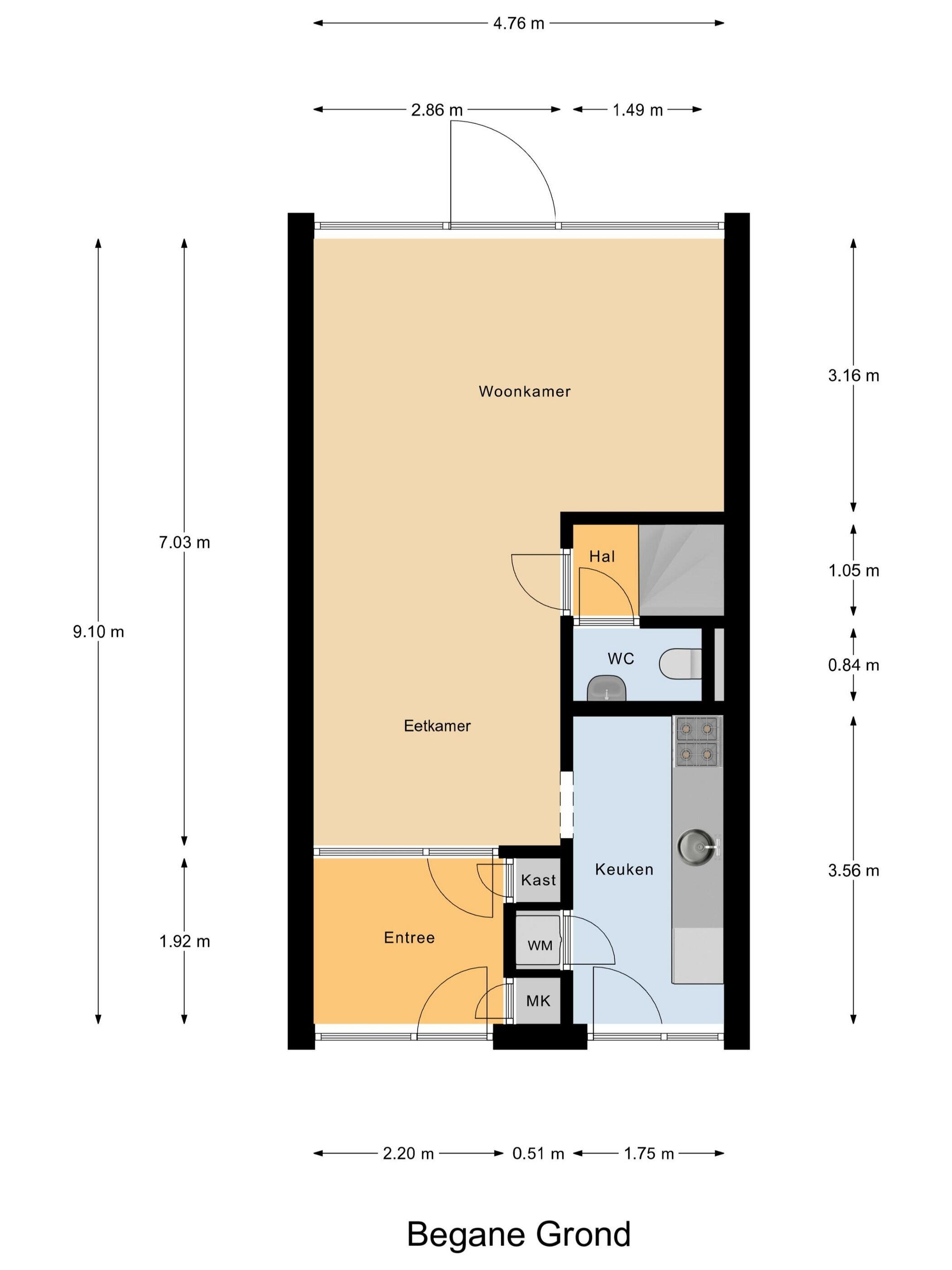 - 50 m² (10,00 meter diep en 5,00 meter breed)